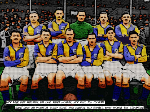 Back Row: Bert Sproston, Willis Edwards, Jock McDougall, Albert McInroy, Jack Milburn, Cyril Hornby. Front Row: Harry Duggan, Eric Stephenson, Arthur Hydes, Billy Furness, Tom Cochrane. 1935-36